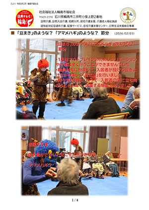 社会福祉法人 輪島市福祉会 あての木園 〒929-2378 輪島市三井町小泉上野2番地 TEL 0768-26-1661 FAX 0768-26-1751